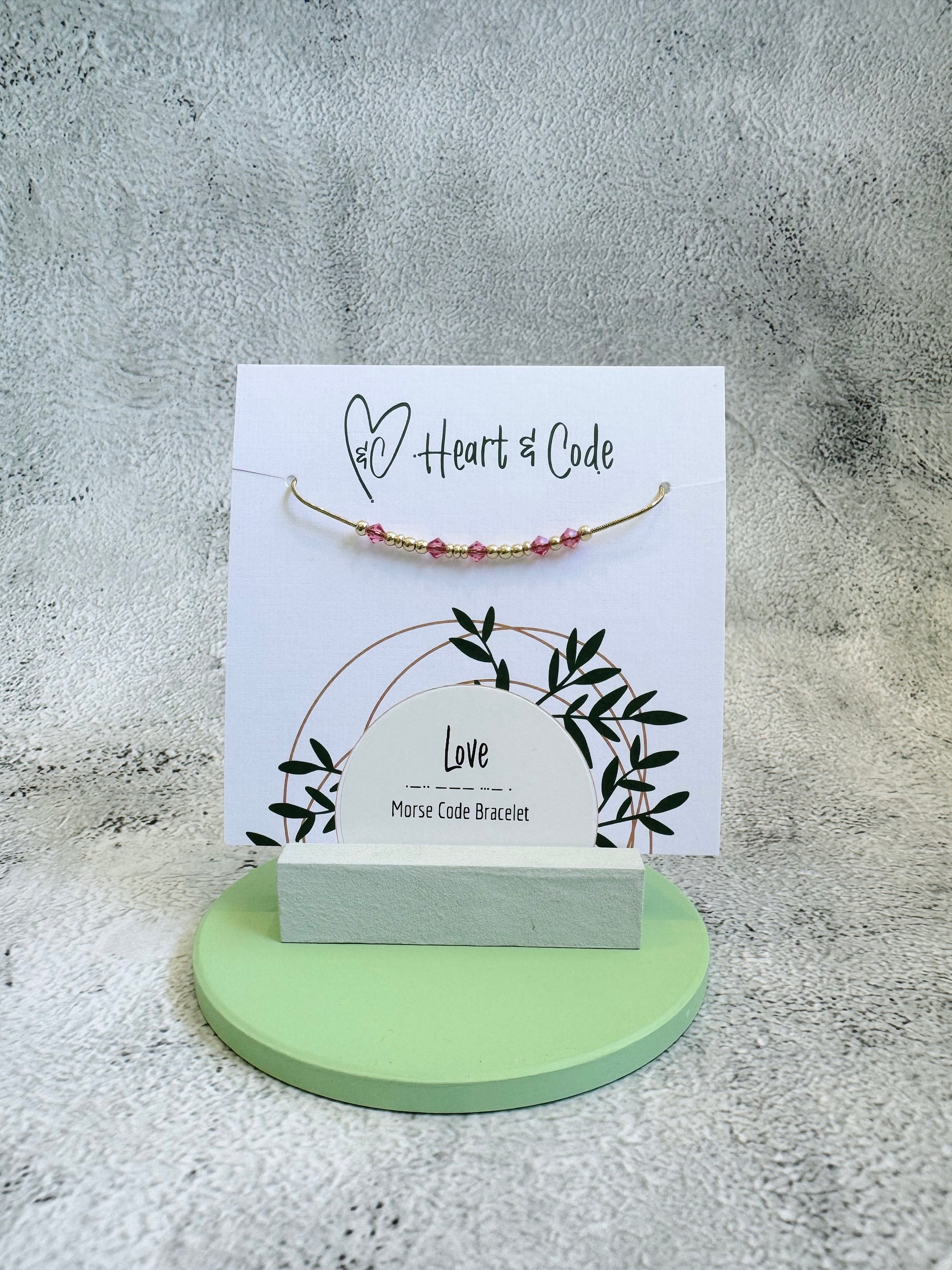 Express your love with this 14K gold plated bracelet featuring the message 'Love' in subtle Morse code, with Rose Preciosa Crystals. Its delicate snake chain and adjustable sliding bead stopper ensure a perfect fit, reminding your special someone of their importance every time they wear it.