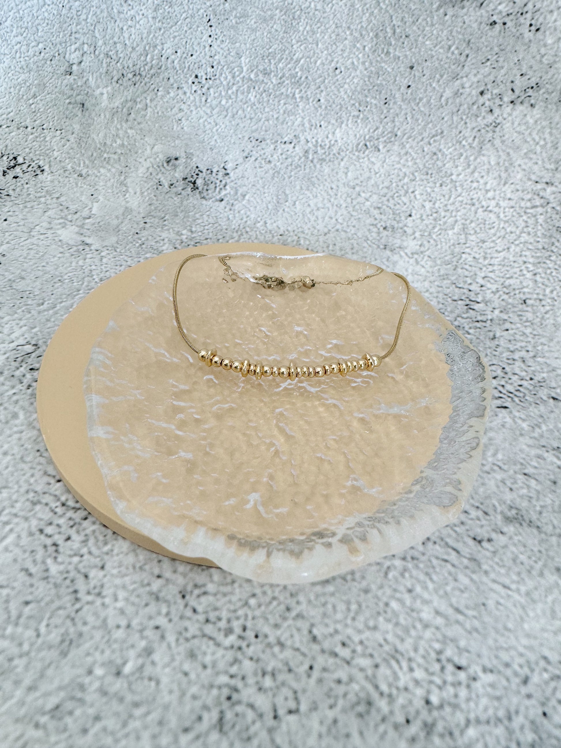 Show your strength with this 14K gold plated bracelet featuring the message 'Strong' in subtle Morse code. Its delicate snake chain and adjustable sliding bead stopper allow for a perfect fit, reminding you of your resilience every time you wear it.